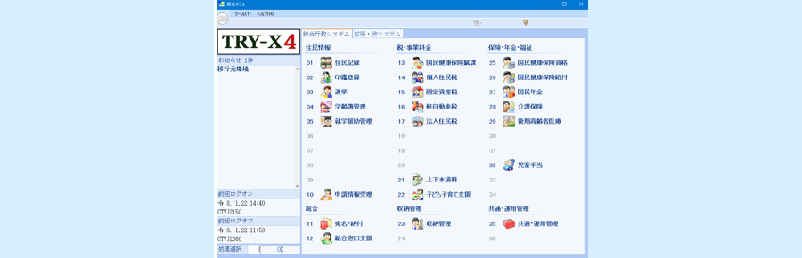 総合行政システム「 TRY-X4 」 ※地方公共団体情報システム標準化法に準拠